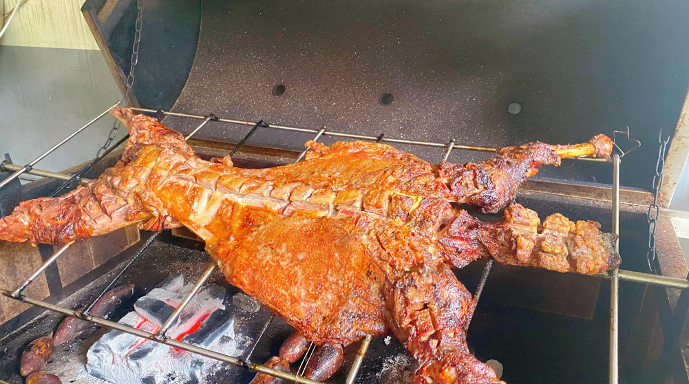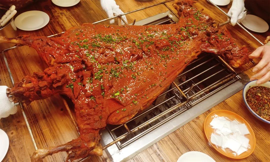 烤全羊均为庄园野外放养的黑山羊,现杀现烤,最大程度保留羊肉的鲜美口感。外皮焦黄酥脆,内里肉质鲜香细嫩,肥瘦相间,一口下去,肉香扑鼻,可以现场亲自挑羊~